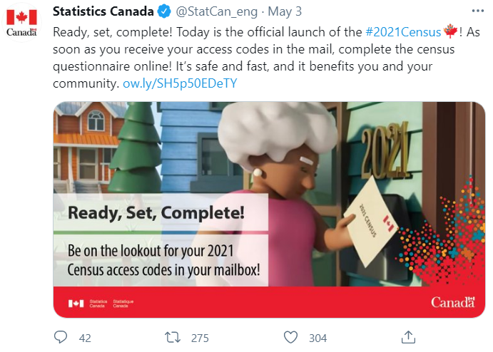 据CTV报道,今年约有1500万个家庭将通过邮件获得人口普查的访问代码,以便大家可以在线填写人口普查。
