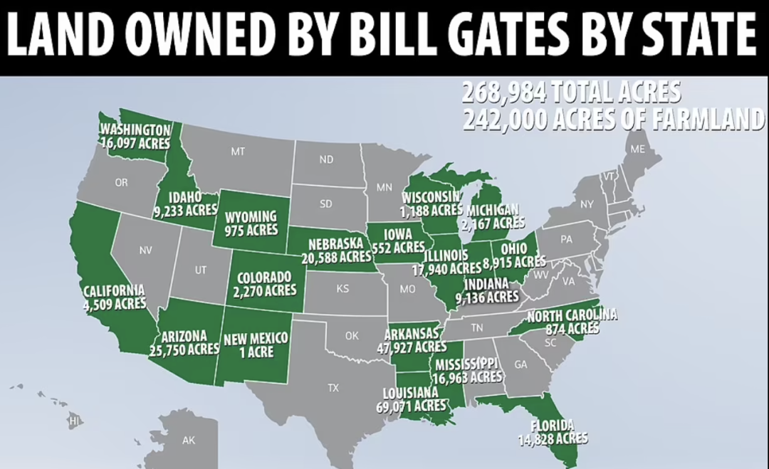 据悉,比尔盖茨已经悄悄买下了美国18个州的24.2万英亩农田,以及19个州的26.8984万英亩多用途土地,成为了美国最大的农业土地所有者。