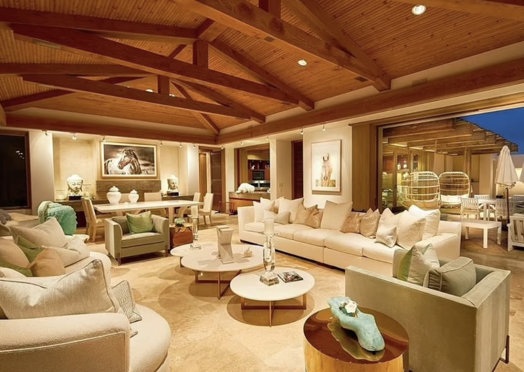 比尔盖茨及梅琳达在美国的多处豪宅。房屋设计有室内室外游泳池,地板上配有水下音乐系统和化石设计。部分豪宅中还有人工河,里面养着鲑鱼和鳟鱼,附带一个沙滩,那里有从加勒比海进口的沙子。图源:Dailymail