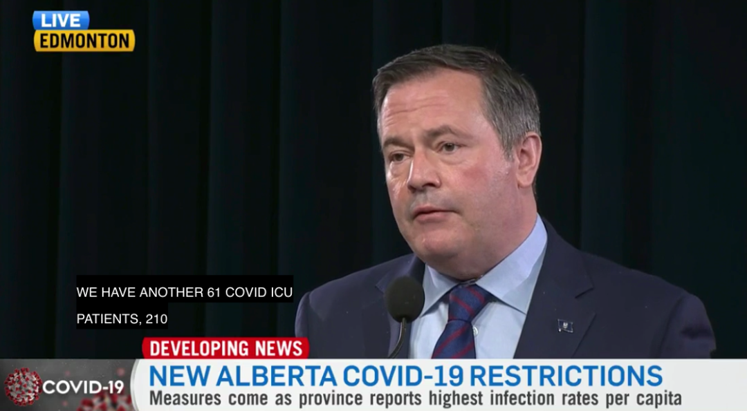 为了减缓疫情传播,阿尔伯塔省省长Jason Kenney认为有必要出台一系列更严格的公共卫生防护措施,否则医疗卫生系统将不堪重负。