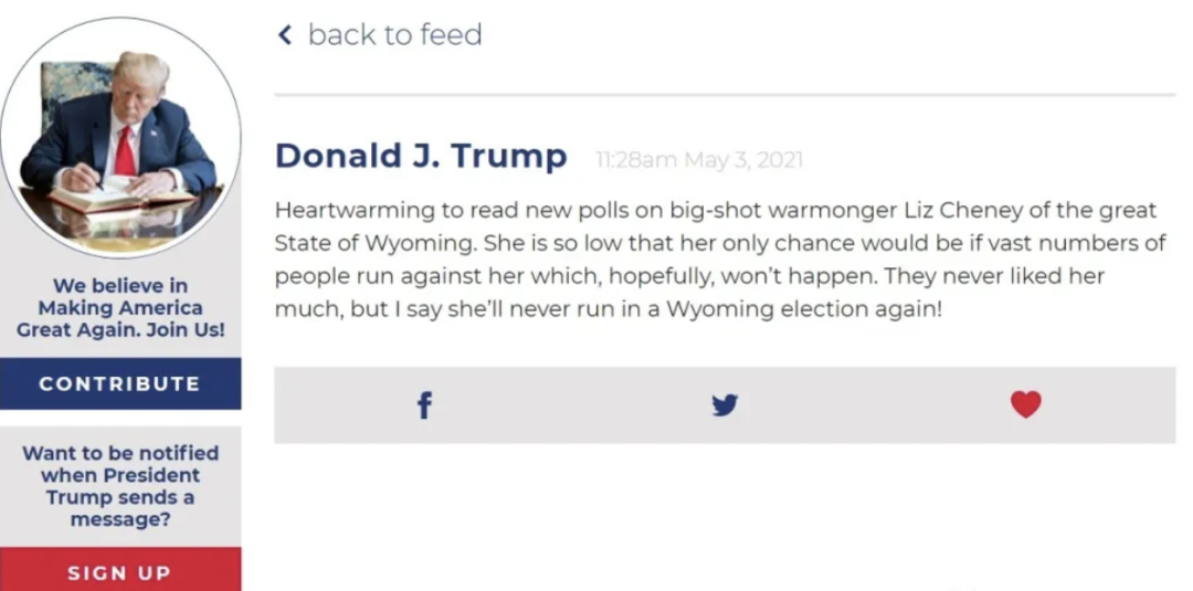 博客尚能评论,但“特朗普的书桌”竟然连个评论区也没有。某种程度上,这里更像是一个留言板。