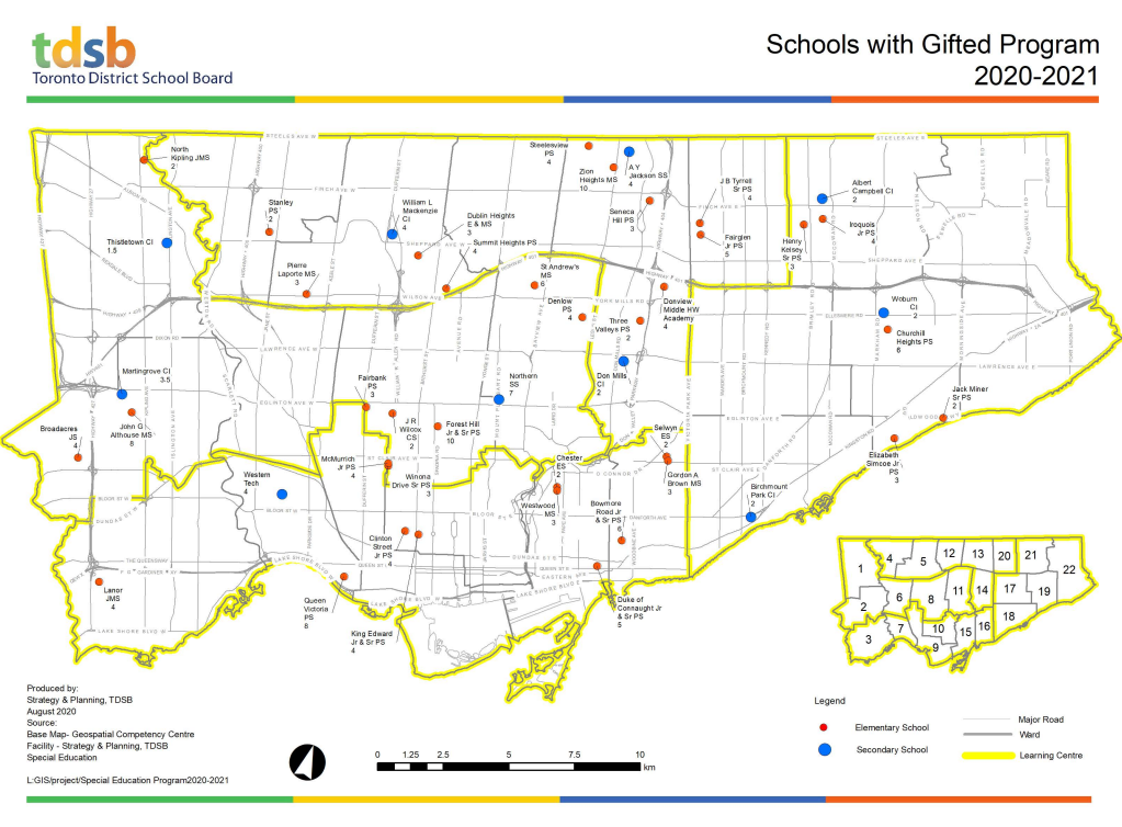 图源:TDSB(多伦多小学和高中Gifted Program的分布)
