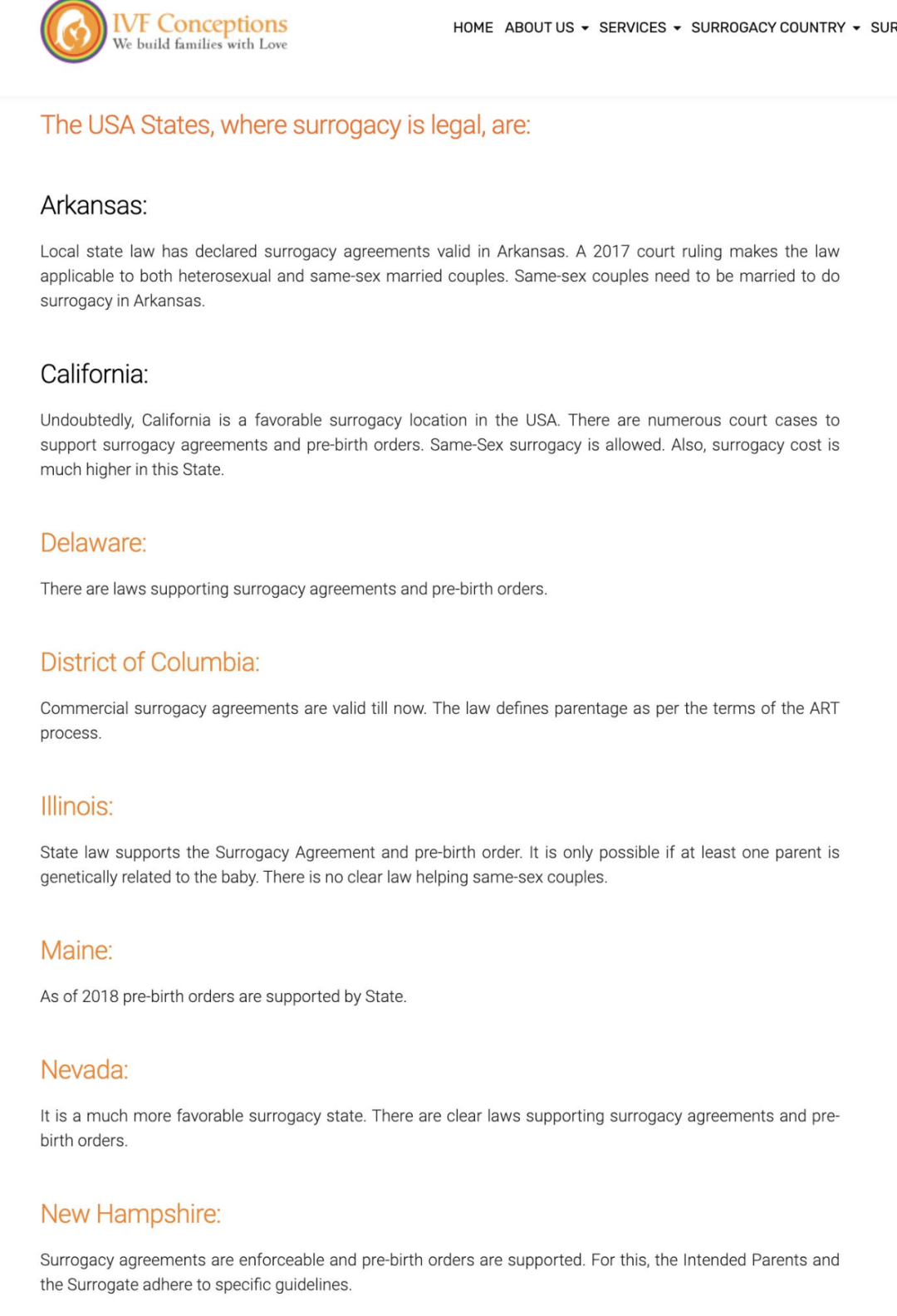 小编经过了解得知,在美国绝大部分地方代孕产业都是合法的。但每个州的法律对代孕都有不同规定。譬如加州,对代孕的限制很少,但也是在2013年才开始合法化。而纽约,则去年才正式合法。而对于申请代孕的家庭,也没有国籍、身份、代孕数量的要求。