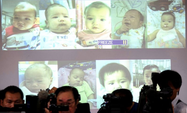 2014年八月,泰国当局调查提供商业代母服务的“生育诊所”期间,在一个单位发现了13个由保姆照看的幼儿,全部为时年24岁的日本男子重田光时经泰国代母所生。