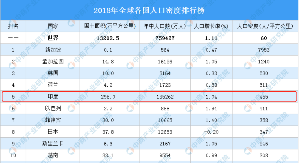 这个人口数据排在世界第二,人口密度数据排在世界第五。