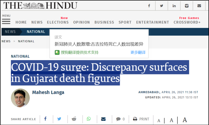 其实印度本地的报纸媒体早就行动了起来,《印度教徒报》就认为古吉拉特邦死亡人数存疑。