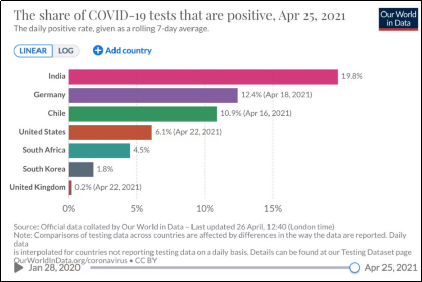 也因为“OurWorldinData”上当时印度的整体的阳性率是19.8%,当然这个数据很官方。