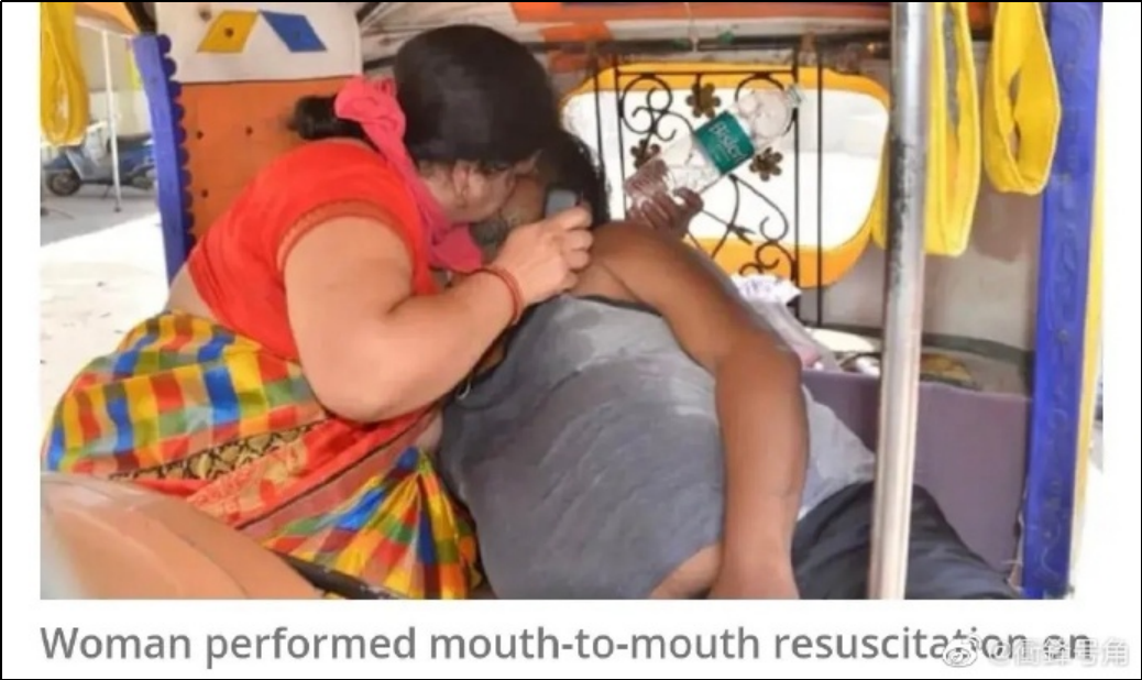 印度有位丈夫病了,他妻子送他去看病,没有供氧的工具,妻子只能嘴对嘴灌气,不顾自己的安危,但丈夫还是死在了去医院的路上。