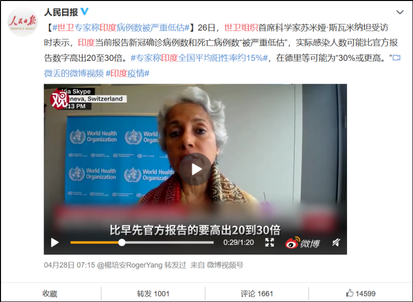 世界卫生组织不久前通报这个数字,我想一定程度上是为了提醒印度,不要伤害了民众,不要连累了世界。