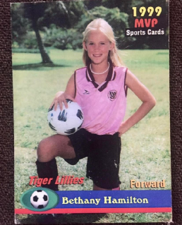 今年31岁的贝瑟妮,和丈夫以及三个可爱的儿子共同生活在一起。她的人生中曾经有很多荣誉:NSSA (National Scholastic Surfing Association)全国冠军、多次在各项冲浪赛事中名列前茅、个人故事被改编成电影搬上大银幕……