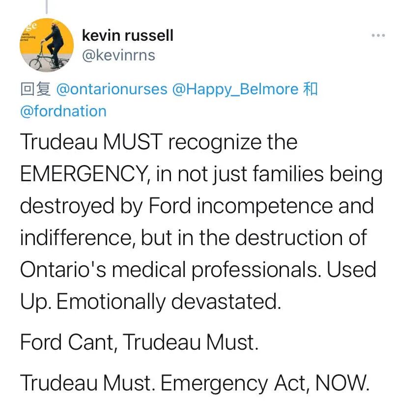 还有Call特鲁多的:“不能让福特的无能和冷漠毁了安省的护士们,他不行,就你上!”