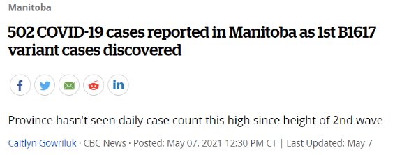 而就在这两天,5月7日,印度变种还攻入了曼尼托巴省。