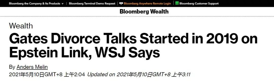 (彭博社:《华尔街日报》称,盖茨夫妇离婚谈判2019年就开始,和爱泼斯坦有关)