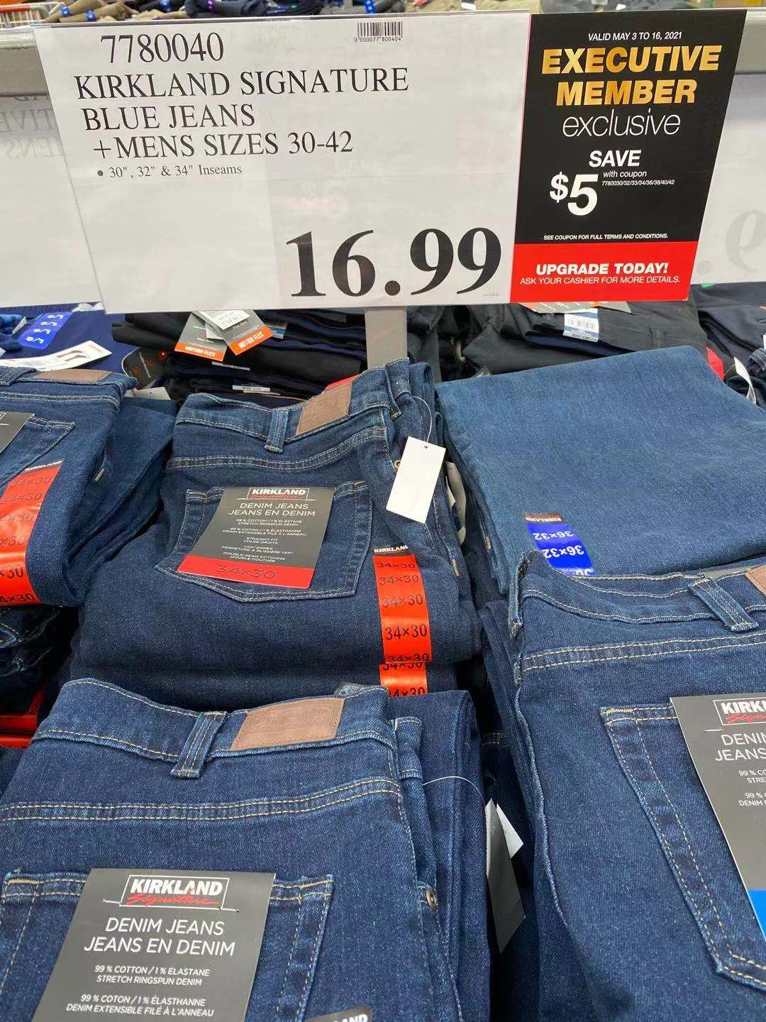 KIRKLAND男士牛仔裤,黑卡优惠后11.99元。适合直男的中规中矩牛仔裤,永不出错。