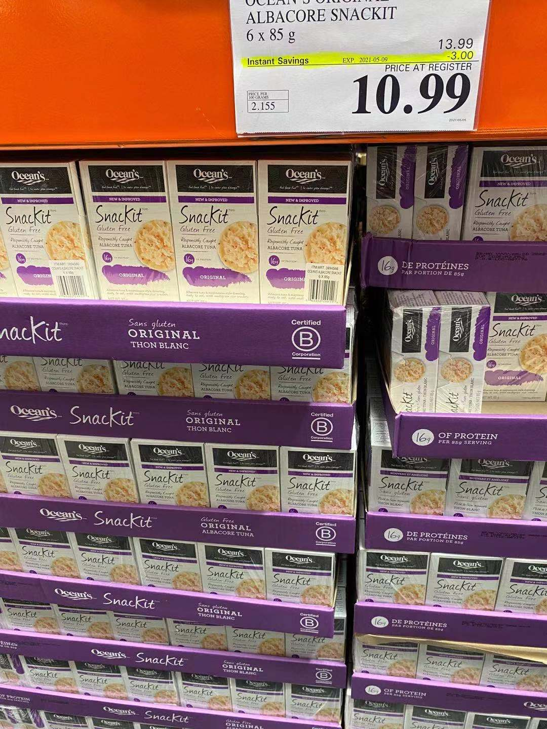 这是OCEAN’S ALBACORE SNACKIT一款适合外带的奢侈小零食,每一个小盒子里包含100%长鳍金枪鱼酱,搭配的小饼干,还有贴心附赠纸巾和小勺,带出去绝对精致且味道也很棒,现在折后10.99元。