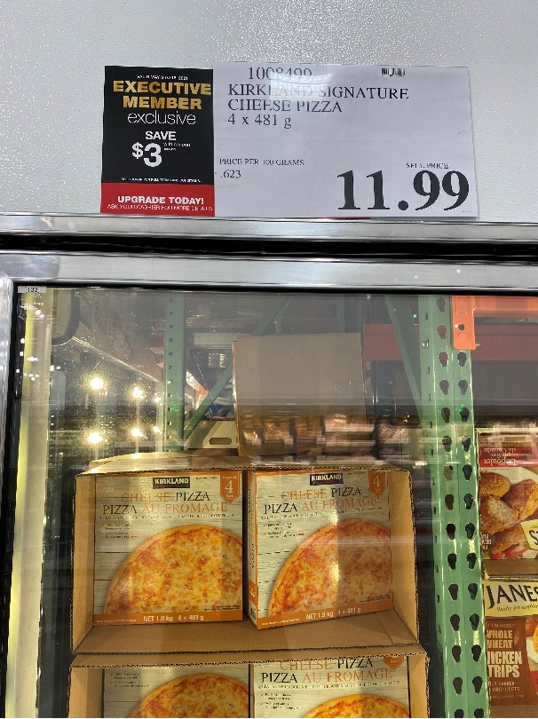 刚放入烤箱中味道有点怪怪,但是烤熟后味道很特别的KIRKLAND 芝士披萨,4*481G原价11.99元,有黑卡优惠3元。
