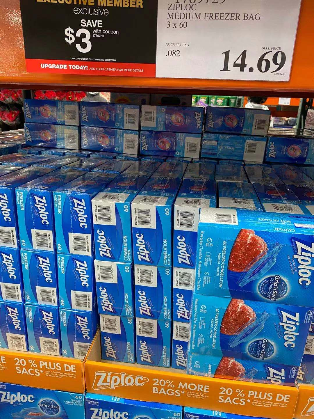 这是家庭常备的密封袋,不容易变质且消耗快的东西,小编认为遇到优惠可以多屯一点。ZIPLOC 密封袋,最实用的中号,无论是分装肉类或其他食品都很方便,黑卡优惠后11.69元3大包。