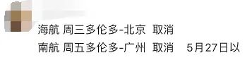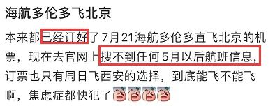 今天,就又有到处流传就差官宣的消息:海航,取消周三多伦多-北京的航班