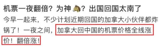 加拿大的疫情已经反反复复一年了,很多华人都在考虑回国。也有许多人迫于工作压力,要尽快返航!前几天,才被中国-加拿大双向机票暴涨刷屏!