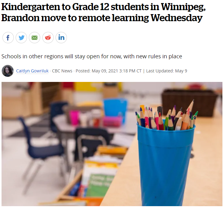 曼省疫情最严重的地区Winnipeg和Brandon也宣布线上学习的计划将延续到5月底。