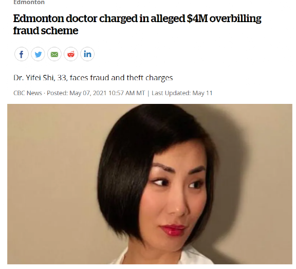 【加拿大乐活网lahoo.ca 程序综述】一名华人女医生近日因涉嫌诈骗阿尔伯塔省政府350万到410万加元被提起公诉。