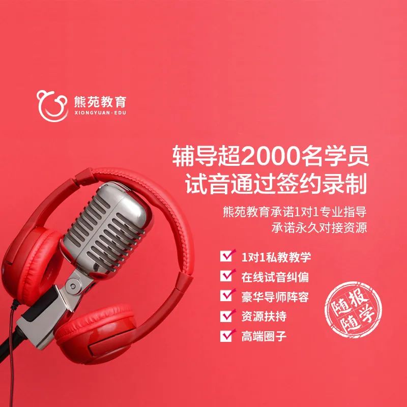 它的创始人朱祐一毕业于上海戏剧学院,依托上戏理念、专业方法、科学创新,2 年来帮助2000 名学员试音通过,签约了录制平台、出版社、文学网站,成为有声书配音员。圈内人都知道,熊苑对学员的严肃承诺: