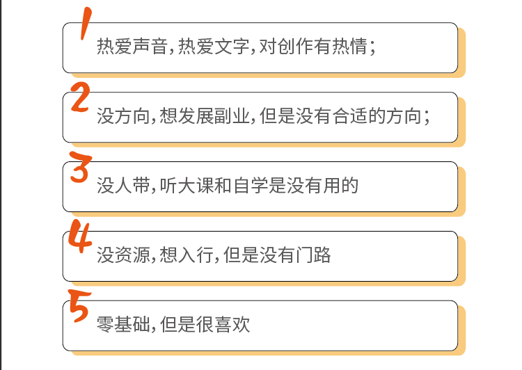 所以,有时候你并不是缺乏提升和赚钱的机会,只是缺少一点开始的勇气。如果你是下列几种情况,我建议你勇敢尝试一下录制有声读物这个事儿: