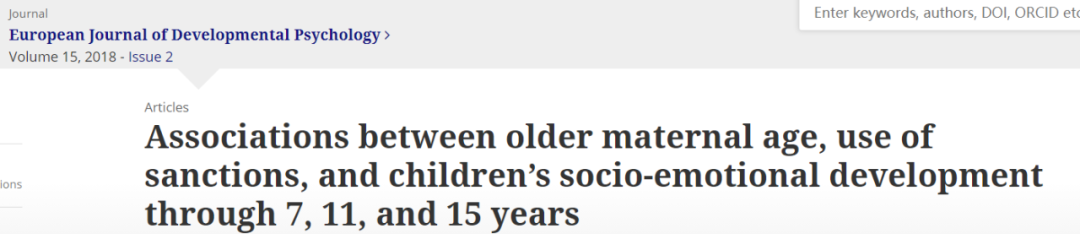 有一项研究显示,年长的母亲可能是更好的母亲。这项研究追踪了学龄儿童,发现拥有较大年龄母亲的儿童在7岁和11岁时的行为、社交和情感问题较少,而在15岁时则没有这些问题。