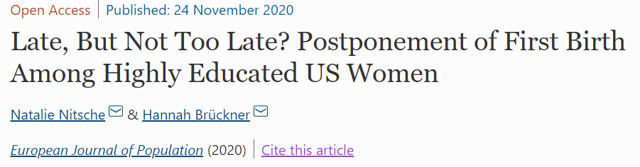 2020年11月24号,发表于《欧洲人口杂志》(European Journal of Population)的一项研究探讨了受教育程度与生育之间的关系,研究结果显示受过高等教育的美国女性普遍推迟生育,并一定程度上影响生育率。