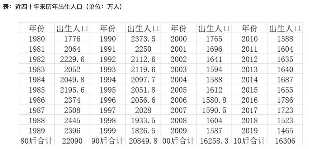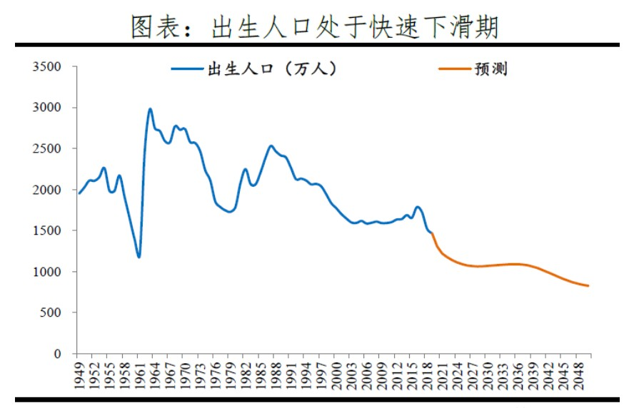 人口普查数据显示,2019年我国出生人口1465万人,比2018年减少58万人。2020年新出生人口同比较少18%,跌至1200万人,生育率为1.3。