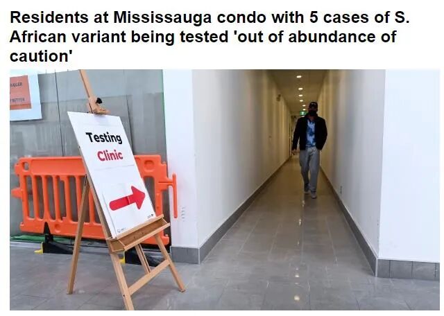 今年2月,密西沙加一间公管公寓曾发现5例源自南非的新冠变异病毒,出于谨慎,皮尔区卫生官决定对该公寓的全体居民进行检测。