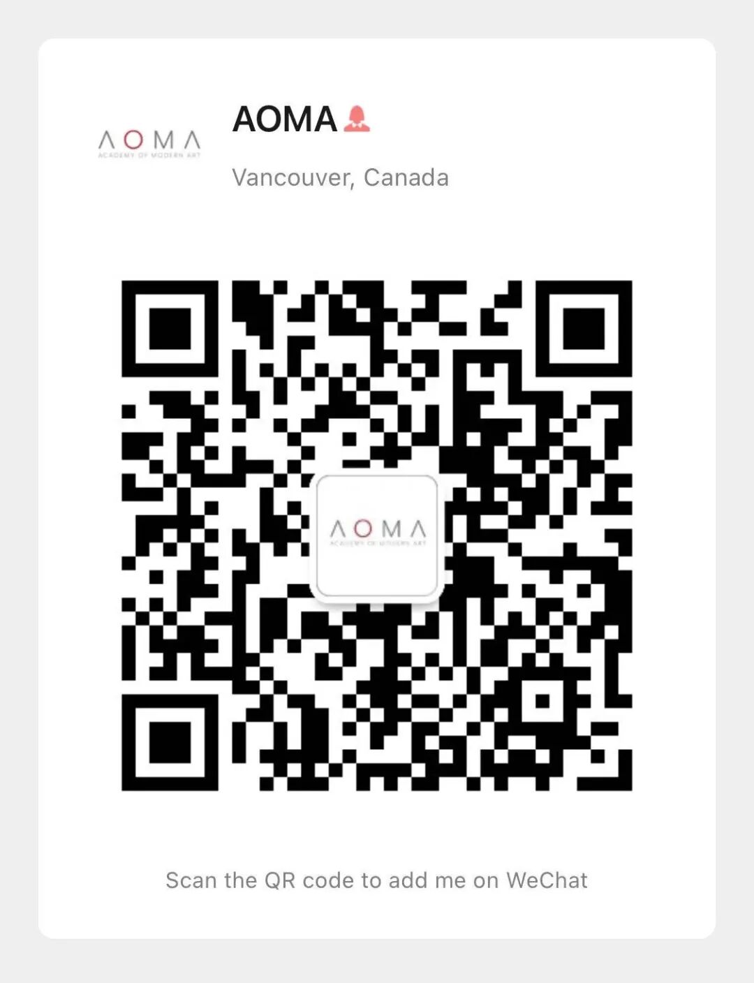 咨询请致电:604-564-2408,或上网 www.aoma.ca/cyvac;微信客服请扫下方二维码。