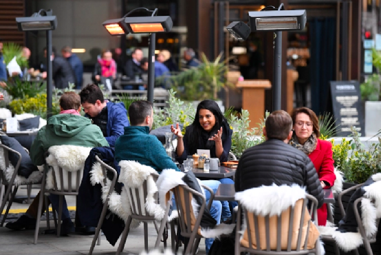 4月24日的伦敦,人们在室外用餐。图源CBC