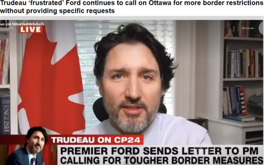 但另一边的特鲁多却指出,两周前他曾与福特和其他省长讨论了边境实施更具体的限制,不过从未收到安省关于对哪些人实施具体限制的细节。