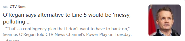 5月11日,加拿大自然资源部长Seamus O’Regan发布声明力挺安桥公司,正式反对密歇根州关闭5号输油管。他指出,5号输油管为密歇根州供应了过半的煤气罐燃气和家庭取暖燃油,也是美国俄亥俄州和宾夕法尼亚州的重要能源,而加拿大的安省和魁省也需要5号输油管的支持。