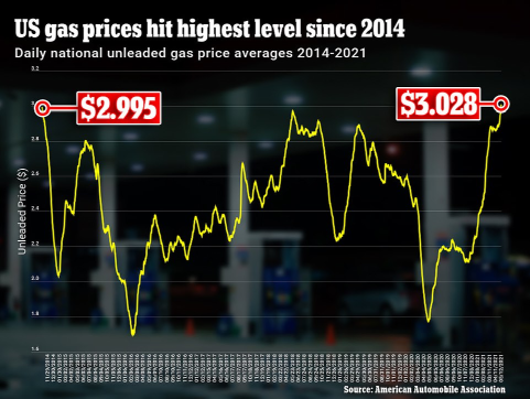美国汽车协会(AAA)表示,全国平均汽油价格涨至每加仑3.00美元以上,为2014年10月以来最高。