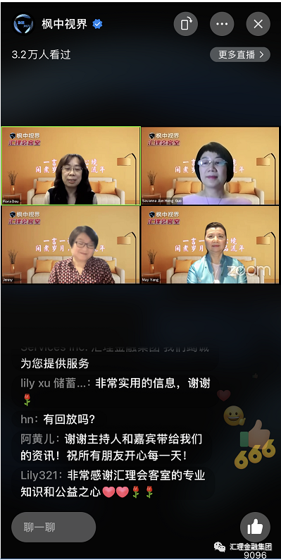2021年5月5日,第四期汇理会客室“加拿大养老面面观”的直播现场可谓是盛况空前,正式节目未开始就已经有几千人入场,正式节目开始不到10分钟直播间人次就已经破1.5万,到节目结束时人次超过3.2万人。直播间内互动频繁,很多参与到直播的朋友在节目后都要求能够再次重播视频回放。