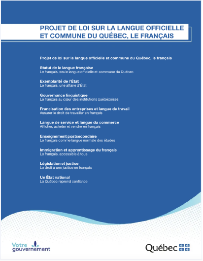 周四(5月13日)上午10点,魁省语言部长Simon Jolin-Barrette在魁北克省议会上提交了 “尊重法语——魁北克官方和通用语言的法案 “,简称第96号法案。