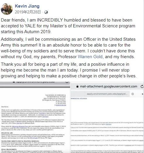 2019年,他接到了梦寐以求的耶鲁大学的录取通知书,继续在喜爱的领域深造。