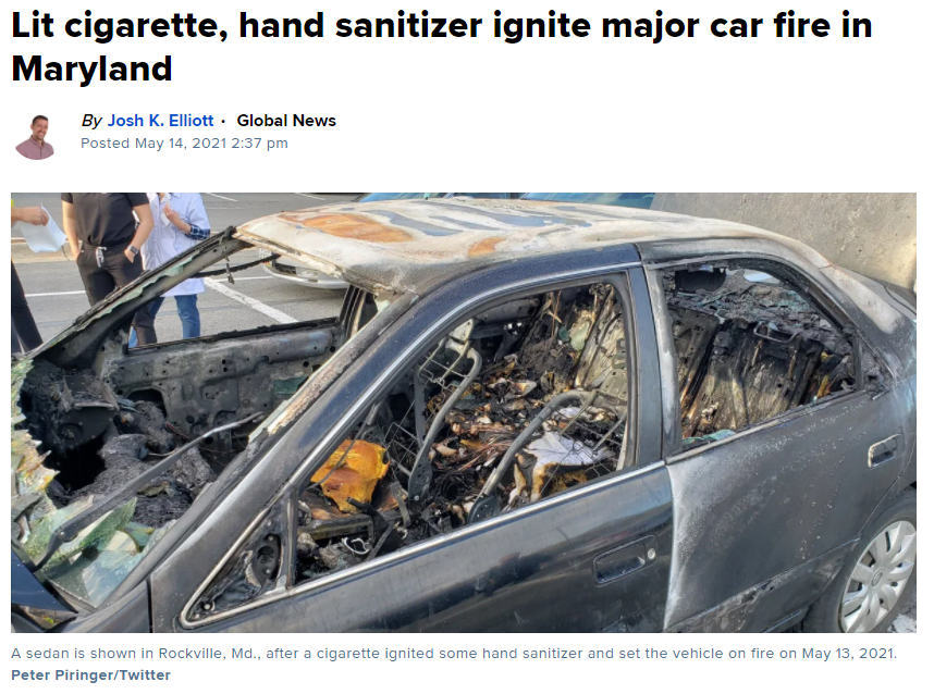 Ref:https://globalnews.ca/news/7862813/hand-sanitizer-flammable-cigarette-car-fire/