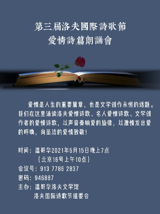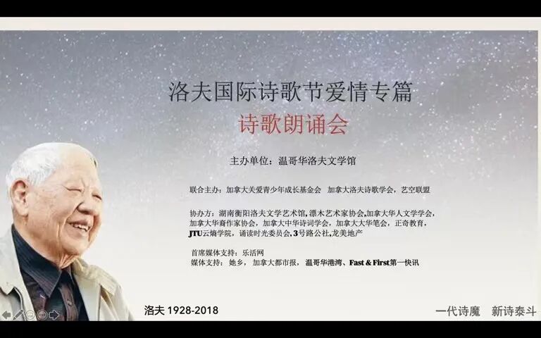 本次洛夫国际诗歌节活动由温哥华洛夫文学馆主办,加拿大关爱青少年成长基金会、加拿大洛夫诗歌学会联合主办,众多文学团体协办。