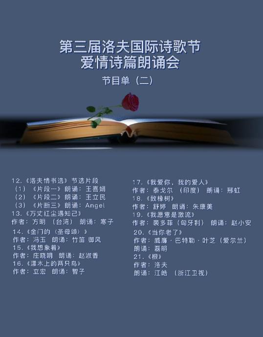 同时,本次朗诵会,我们也收到了多篇讴歌爱情的来稿,有的是诗歌,有的是散文。我们无法在本次朗诵会上一一诵读,所以除了本次朗诵会选用的作品以外,对于所有来稿,我们会陆续在乐活网、她乡等报媒杂志登出,也会在诵读时光微信公众号及文学刊物等登出。