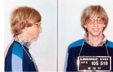 ·22岁的比尔·盖茨因无证驾驶、违反交规被捕后,脸上还洋溢着自信的笑容。
