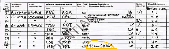 ·比尔·盖茨的名字赫然出现在飞行记录表上。