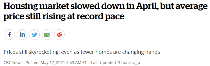 【加拿大乐活网lahoo.ca 亚瑟综述】据CBC报道,加拿大房屋市场的报告显示2021年4月份销量开始放缓,但平均价格仍以创纪录的速度上涨,即使转手的房屋减少,但价格仍在飞涨。
