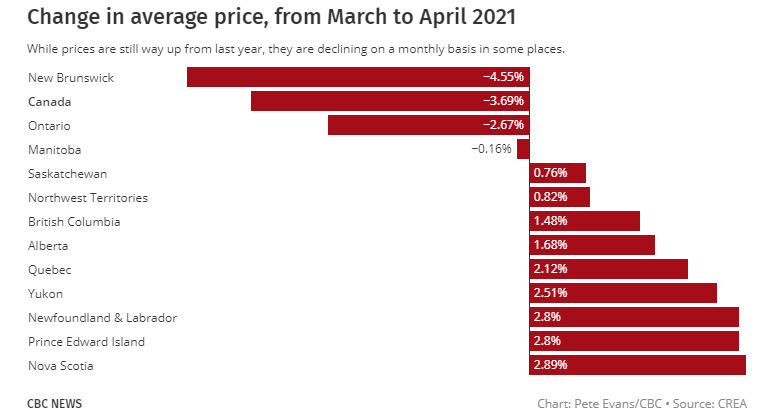 尽管4月份的平均销售价格比新冠疫情的时最低点上涨了近一半,但加拿大炙手可热的房地产市场在4月份明显展现出降温的迹象。