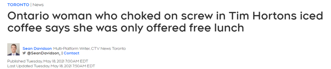 无奈的卡罗琳只好给位于安大略省奥克维尔的Tim Hortons总部打电话,向他们投诉,总部人员竟然告诉她他们根本不知道发生了这件事。卡罗琳只好再把事情的全过程向总部人员报告了一次,对方告知会很快回复她。