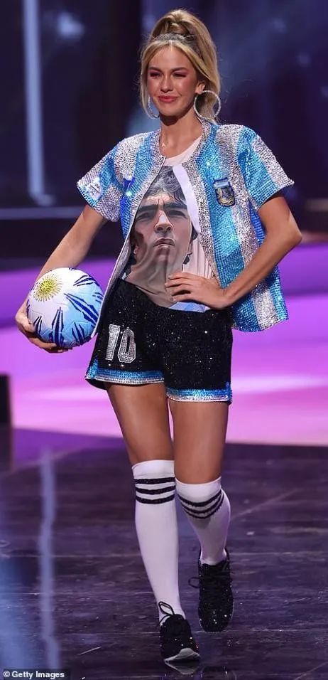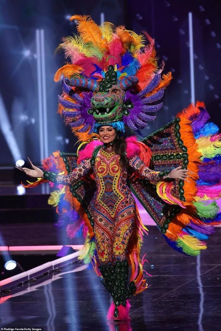 安德里亚·梅萨在比赛时穿着的具有阿兹特克风情的服装