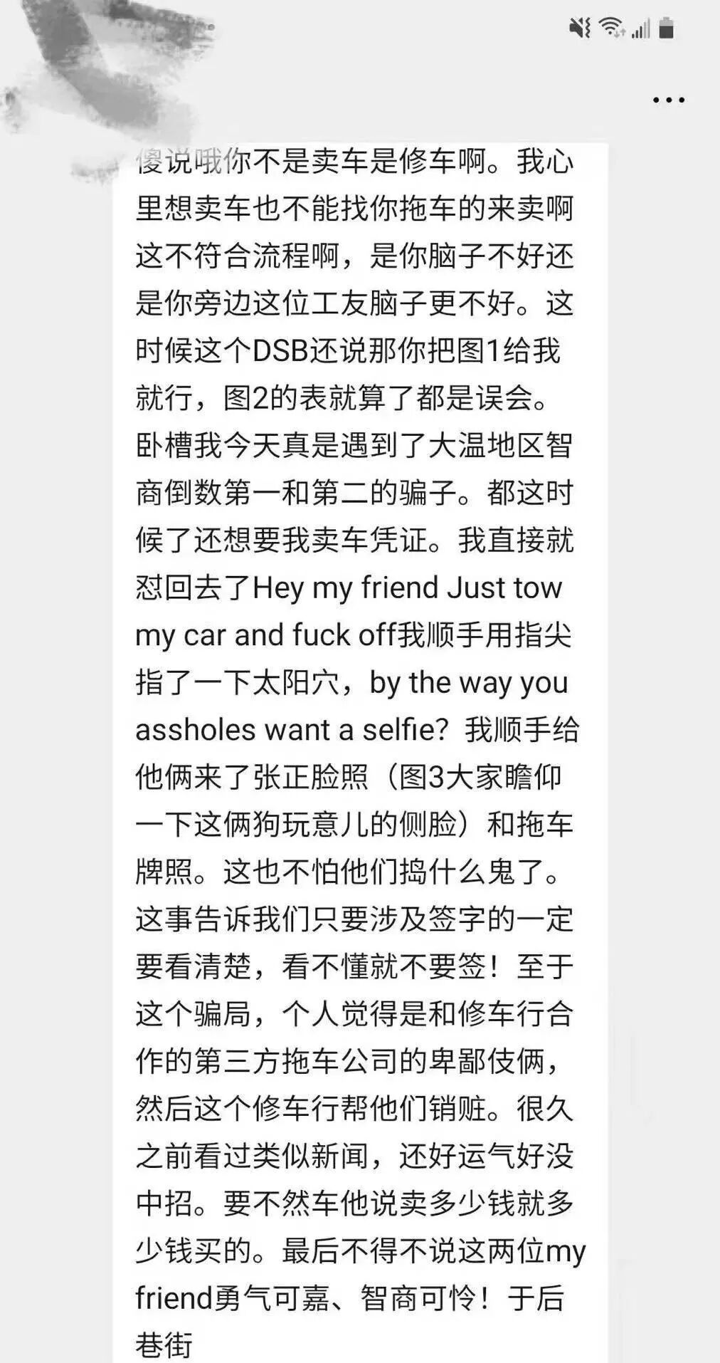大家出门开车要注意安全,出了意外不要慌。此前还有有读者和亚瑟曝料,他的车坏了找了拖车公司,拖车公司居然给他偷换卖车授权书给他签字,幸好他当时仔细审阅了协议,及时发现不对劲,不然车就没了。