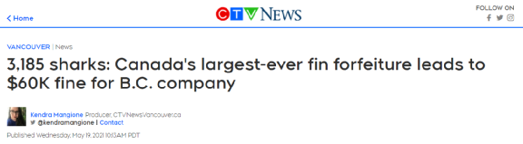 一家大温华人企业近日因涉嫌非法进口鱼翅遭BC省政府重罚。